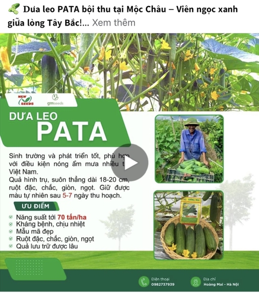 Hiện nay, các ruộng dưa leo PATA của bà con Mộc Châu đang vào giai đoạn chính vụ, với sản lượng và chất lượng rất cao mặc dù gặp điều kiện thời tiết không thuận lợi. Giống dưa leo PATA của Công ty...